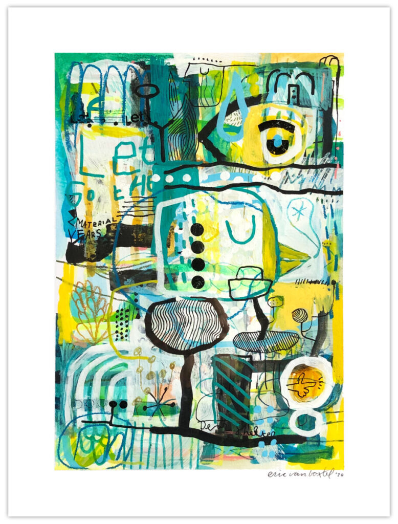In his works Eric van Boxtel combines personal drawings with graphic visuals and expressionistic painting to a mixture that reads like a modern style visual poem. Most of the time there is a lot going on in each piece. It’s how his mind works while creating. A lot of associating, trying, failing, trying again… read more