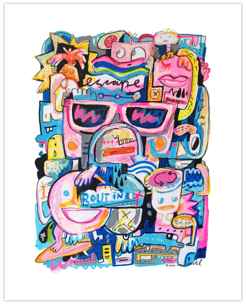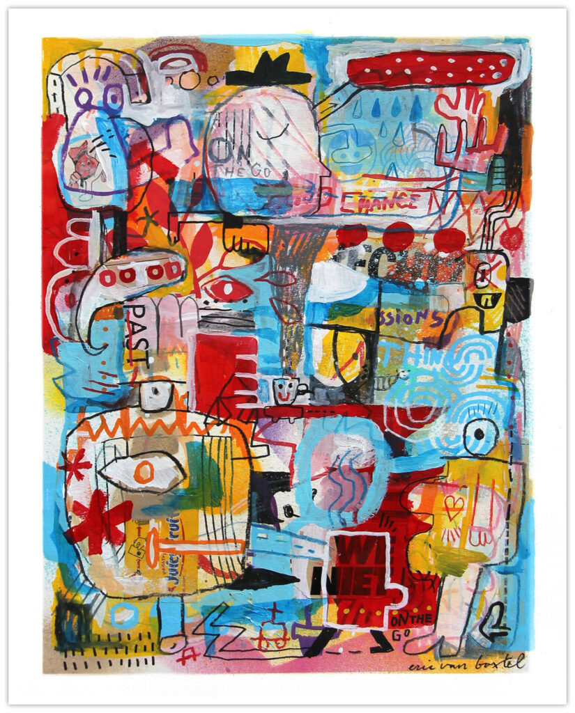 In his works Eric van Boxtel combines personal drawings with graphic visuals and expressionistic painting to a mixture that reads like a modern style visual poem. Most of the time there is a lot going on in each piece. It’s how his mind works while creating. A lot of associating, trying, failing, trying again… read more