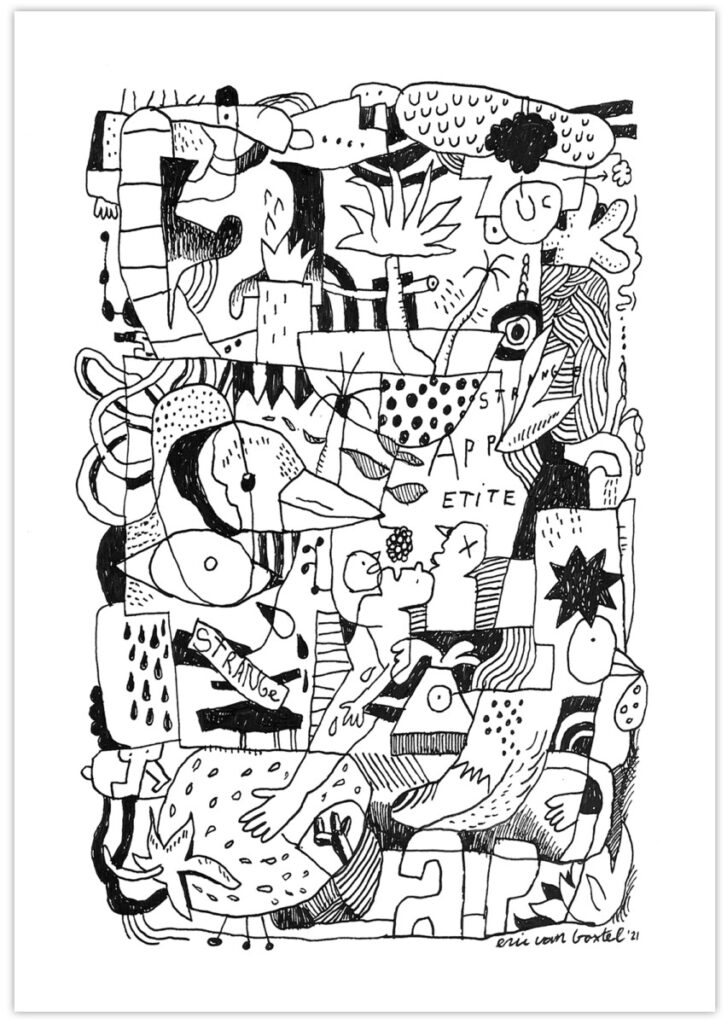 In his works Eric van Boxtel combines personal drawings with graphic visuals and expressionistic painting to a mixture that reads like a modern style visual poem. Most of the time there is a lot going on in each piece. It’s how his mind works while creating. A lot of associating, trying, failing, trying again… read more
